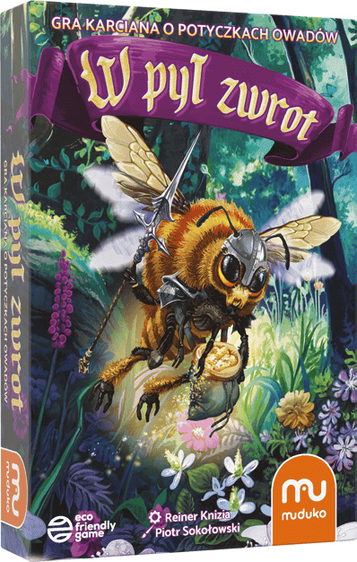 Nie było jeszcze gry wymienionego wyżej autora, która by mi się nie podobała. Kilka z nich ma podobną mechanikę, ale wtedy urozmaicenie wnosi kolejna świetna grafika i wykonanie. Dość wymienić Lato z komarami, Lama drama, Criss cross (moja ulubiona). Od wydawnictwa Muduko dostajemy propozycję przepięknych kart z ilustracjami Piotra Sokołowskiego. To opracowanie graficzne jest swojego rodzaju hołdem dla owadów, którym tak wiele zawdzięczamy. W grze W pył zwrot należy zdobyć jak najwięcej kwiatowego pyłku poprzez wysyłanie owadów zapylających w bój. Liczy się siła owadów, ale także strategia i blef! Warto dodać, że jest to polska edycja gry Loot, która w 2005 roku zdobyła główną nagrodę Mensa Select. Tytuł ten gwarantuje odpowiedni prezent dla miłośników motywów natury i ostrej rywalizacji. Zależnie od wariantu, jest to propozycja dla 2-8 graczy. Gra została wykonana wyłącznie z ekologicznych materiałów, a karty pokryto autorską powłoką biobójczą, dzięki czemu wolne są one od wirusów i bakterii.