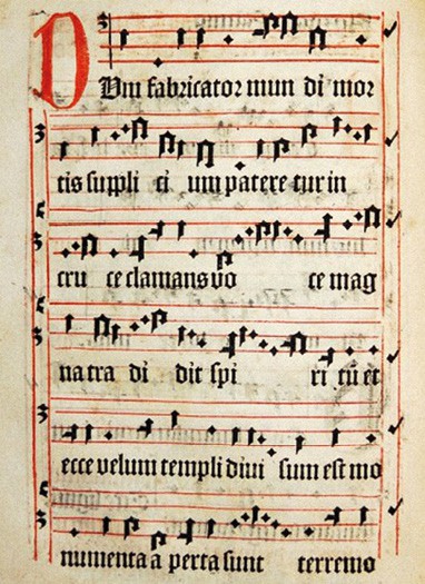 Niewtajemniczonym najstarsze nuty przypominają raczej egipskie hieroglify. Poniżej zapis gotycki średniowiecznego chorału: